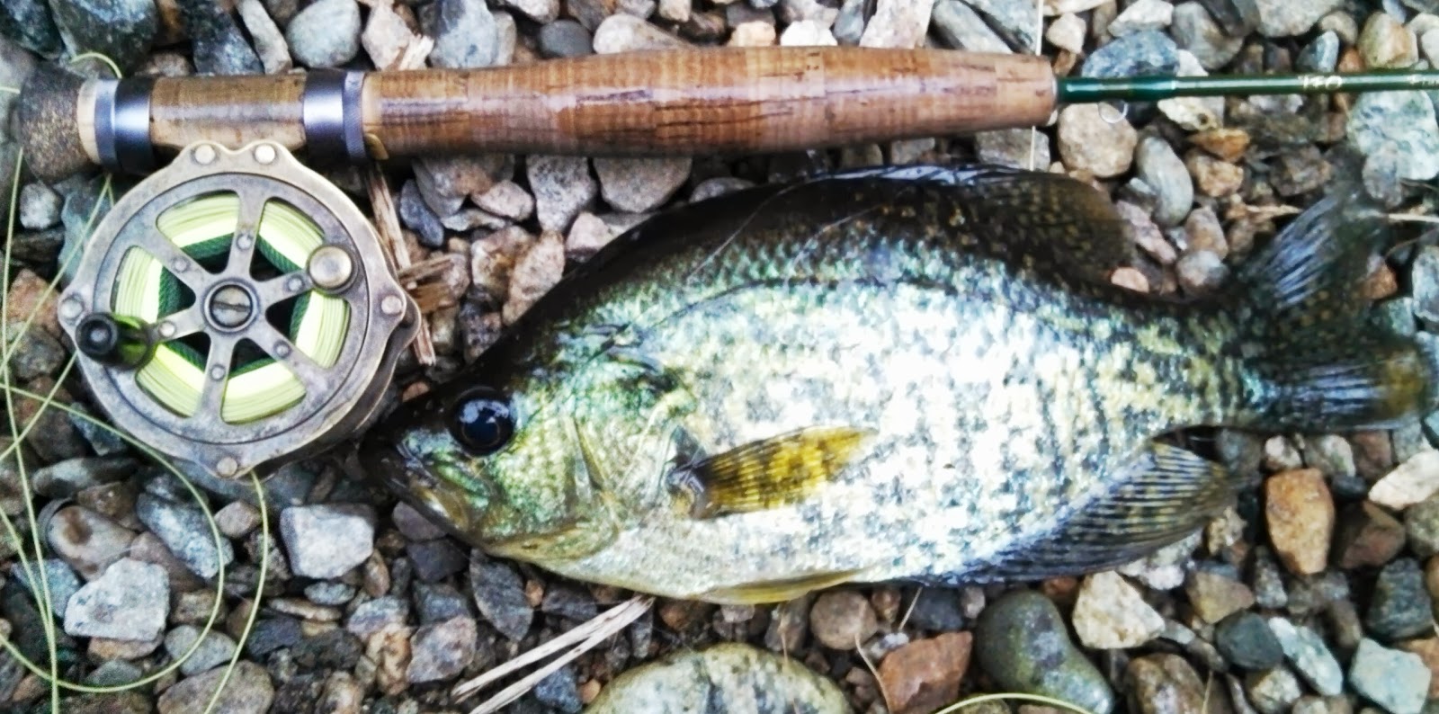 These last few warmer months have taken toll on the local streams. The mixed browns & brookies have been replaced by sunnies, blue-g's and monster crappie. this fun fighting fish was maybe 9" long...